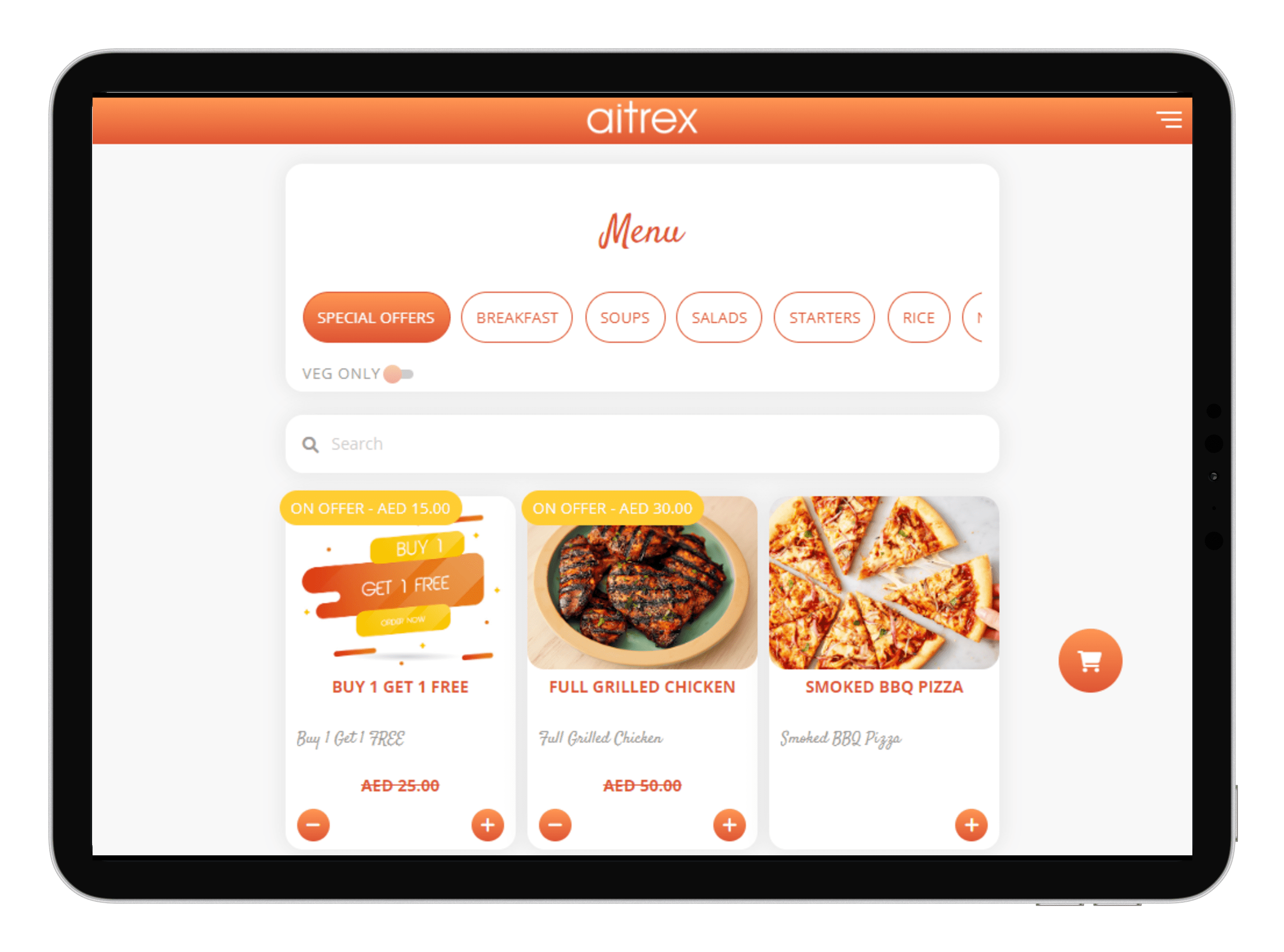 Tablet-mode allows you to take orders via tablets. Waiters or walk-in customers can use these tablets to place orders.